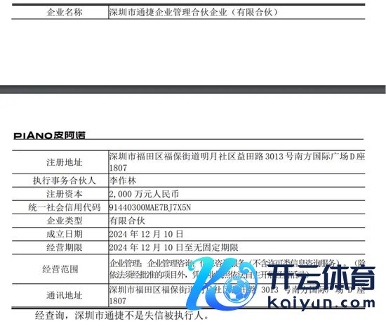 公告流露,深圳通捷斥地日历为2024年12月10日,公司通信地址和注册地址均为“深圳市福田区福保街说念明月社区益田路3013号南边海外广场D座1807”。