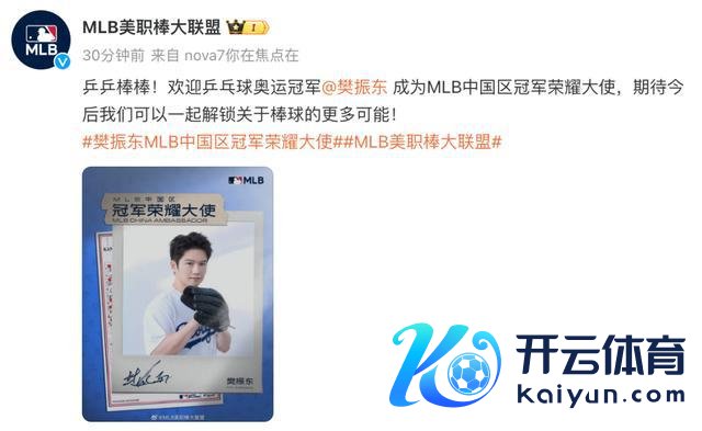 1 月 2 日开yun体育网,@MLB 好意思职棒大定约 发文谅解乒乓球奥运冠军樊振东成为 MLB 中国区冠军荣耀大使。