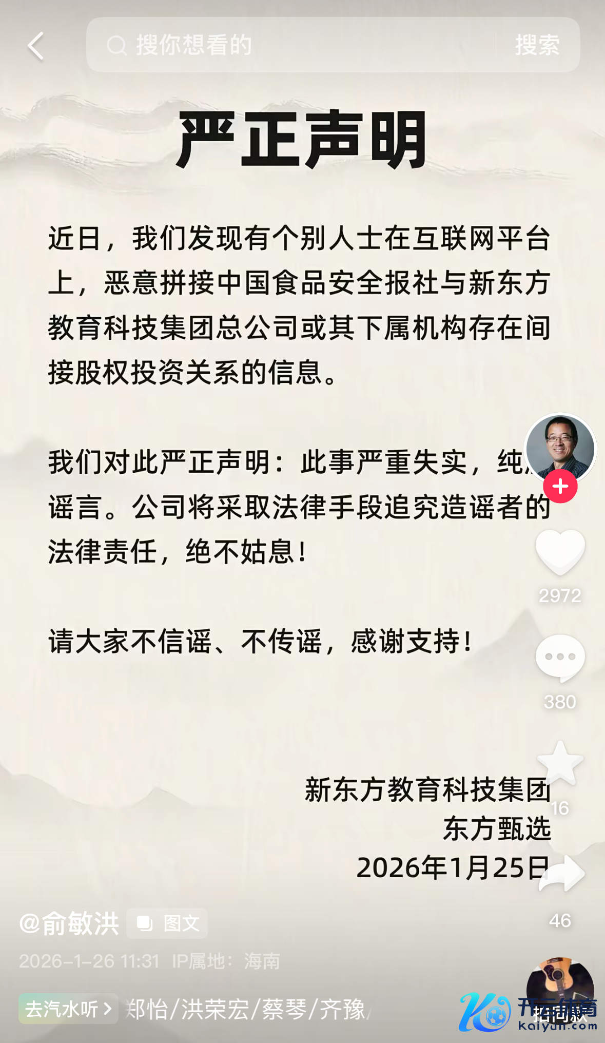 俞敏洪辟谣中国食物安全报社与新东方存在障碍股权投资干系:严重失误开yun体育网俞敏洪辟谣中国食物安全报社与新东方存在障碍股权投资干系:严重失误